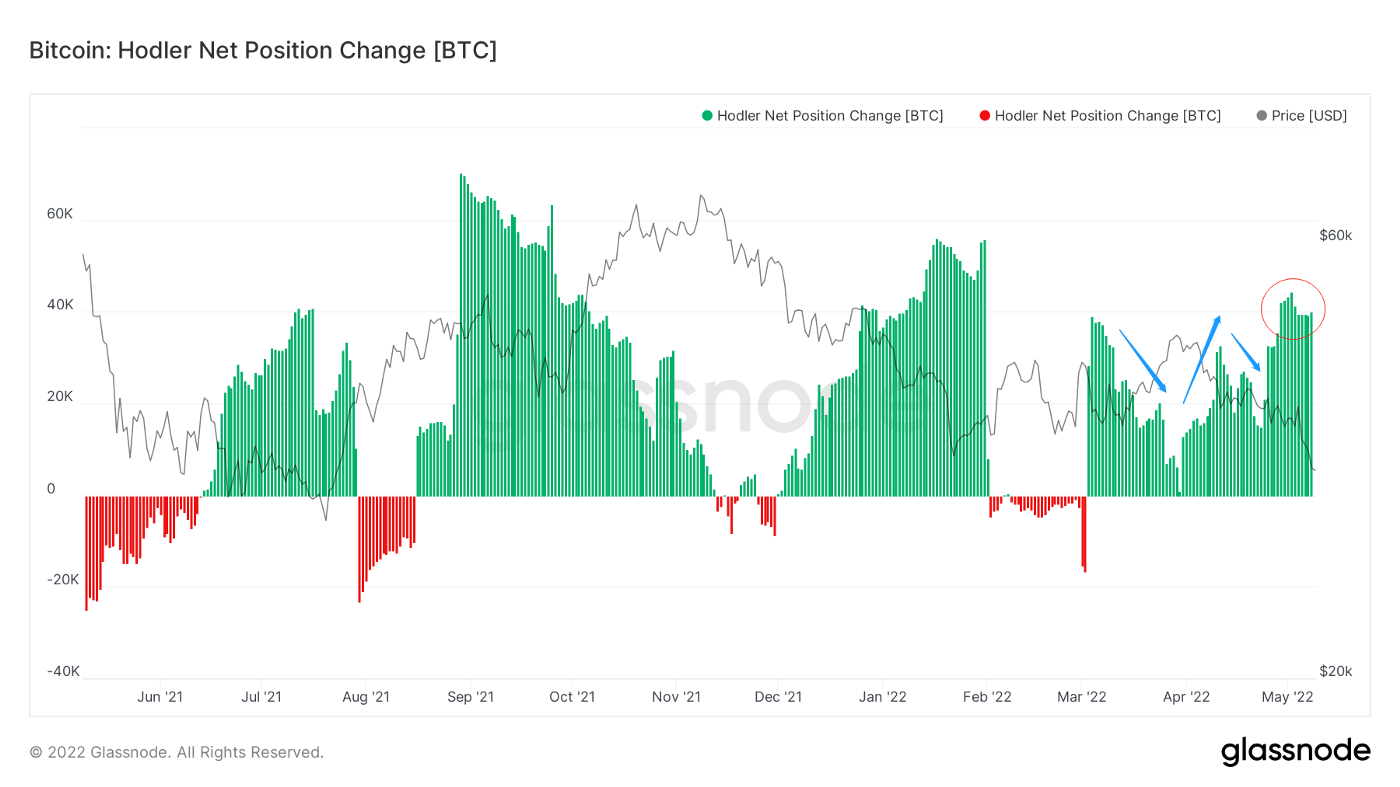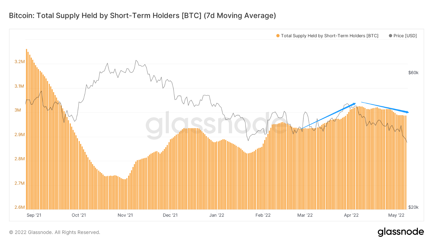短期交易者持有出现拐点,开始转向减持,这与此前不断震荡的市场中稳步增持的行为不同;
