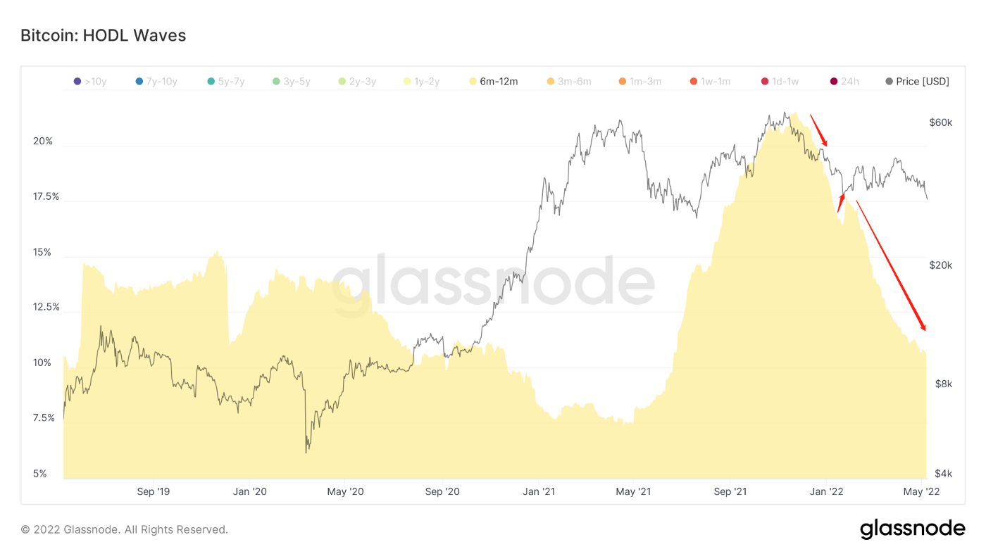 6–12个月的长期交易者半年来持仓不断减少,由21%的占比逐步下降到11%。