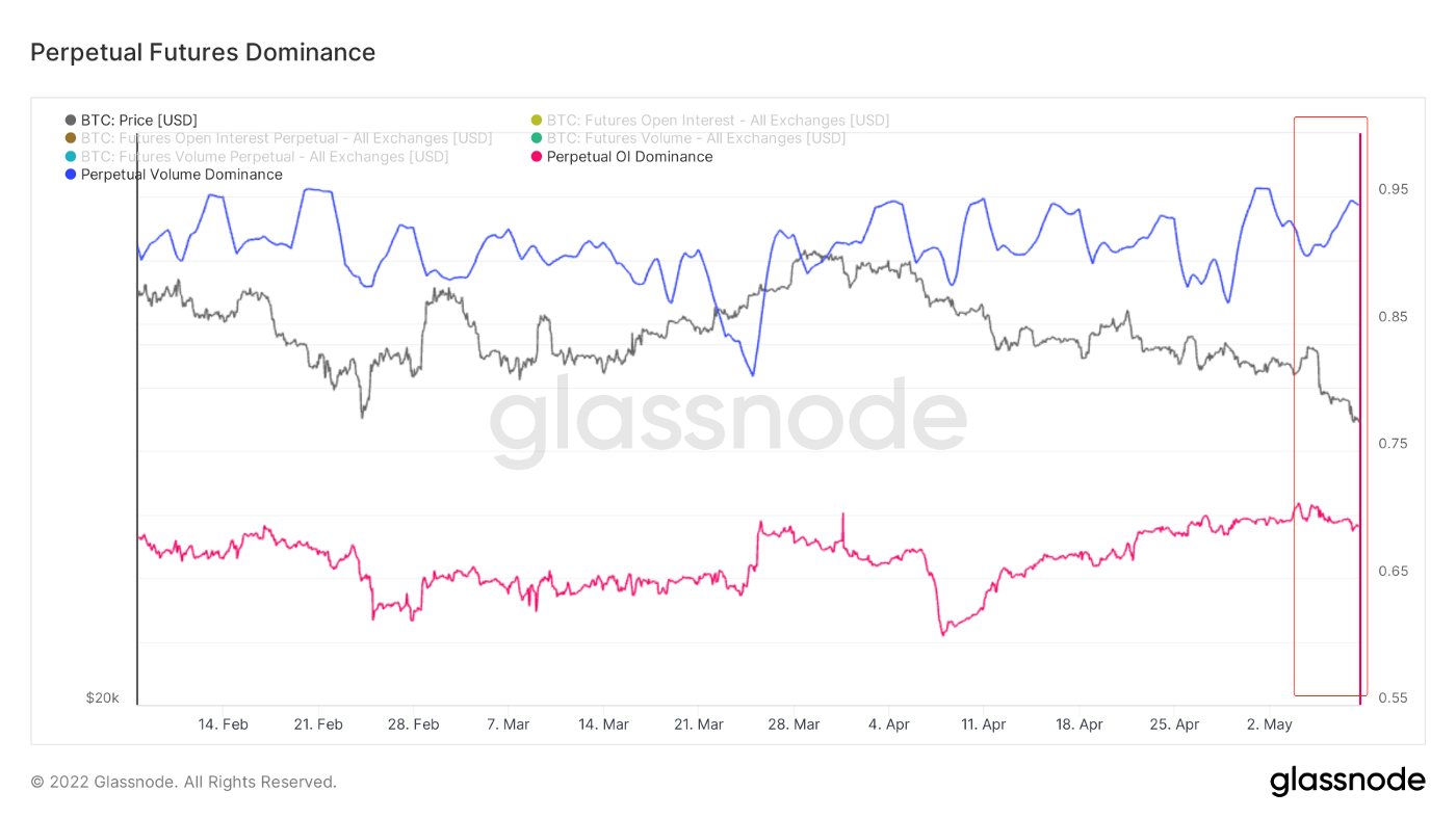 永续期货交易量在总期货量占主导地位逐渐上升,交易者利用永续期货来对冲市场风险的可能性增加,这也是短期内衍生品风险迅速上升的原因之一。