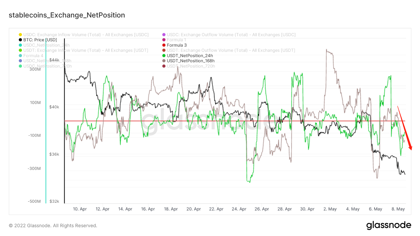 综合USDT交易所净头寸也有部分持续流出,这代表着这部分进场资金意愿并不强烈。