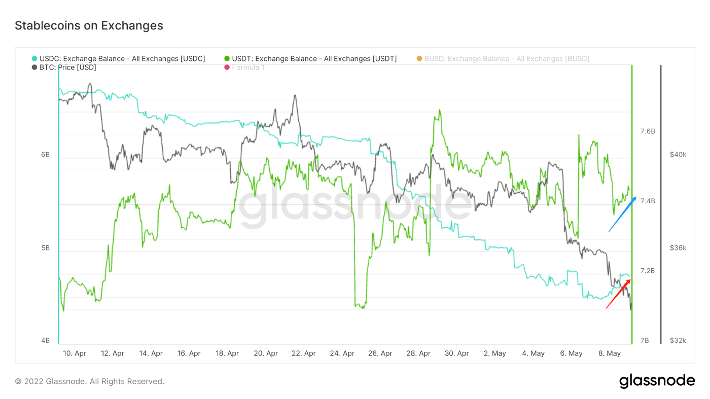 稳定币交易所余额, USDT目前出现了一定量的增量资金,但目前有所回落,有部分购买的可能性。