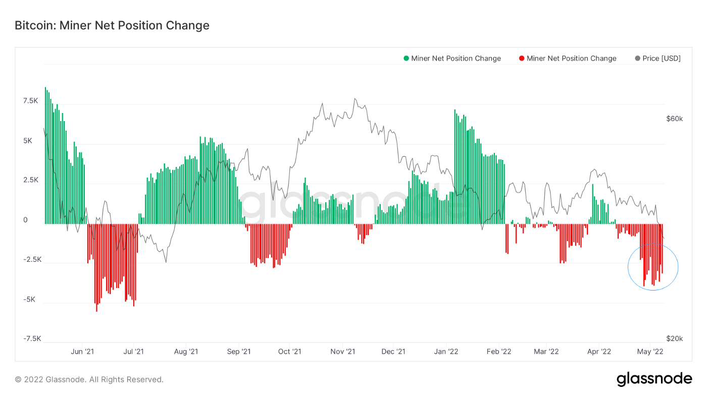 目前矿工抛售幅度在三天前高达年内新高,最近略有减小。