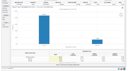 从上周的27%下跌到现在的13.6%,很可能11月不再加息,那么对美股是利好,虽然华尔街在10月体现对数字货币兴趣不大,但11月以后美股如果如期上涨,对比特币的溢出效应还是会有的。