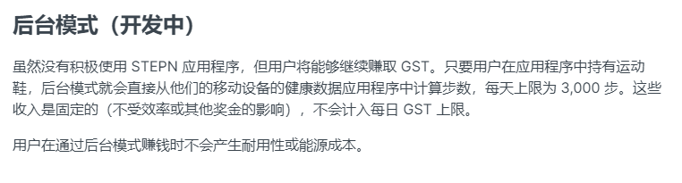 后台模式本质上就是defi的质押。用户可以通过质押自己的鞋子获取持续收益。这个功能可以解决三个问题: