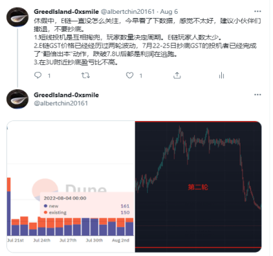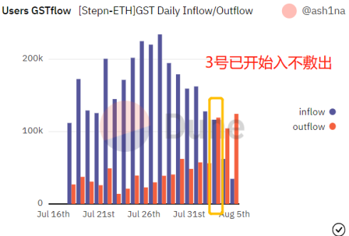 以8月6日时对Stepn的ETH链逃顶分析为例,
