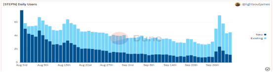 如下图,只看Stepn的用户数量变化是看不出什么的。
