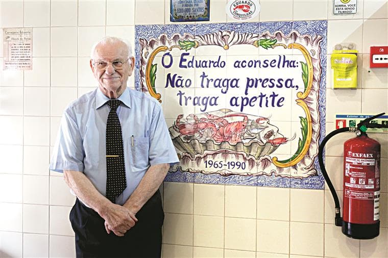 He has a prodigious memory and only hearing harms him. He knew the deepest misery, he walked barefoot in the years he was a pastor, he received a pair of shoes as ordered. He ventured into Lisbon and built his small empire in restoration. It's Eduardo Santos, from Conquilhas, in Parede.
