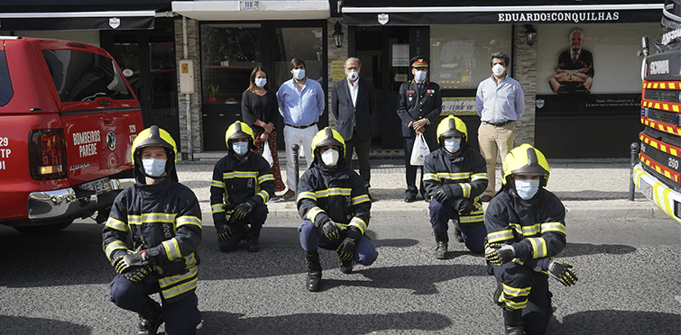 The Mayor of Cascais, accompanied by the President of the Carcavelos/Parede Parish Council and the Parede Firefighters, sang today congratulations to the well-known businessman Eduardo Santos when he celebrated his 90th birthday. Because it happened during the Pandemic, the due removal was protected.