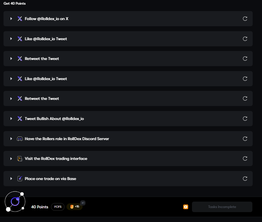In this phase of the campaign, participants are encouraged to actively engage with the RollDex brand and community across multiple digital touchpoints. These off-chain tasks are crucial for building your reputation score within the Galxe Starboard ecosystem and serve as the foundation for your eligibility in the $ROLL airdrop.