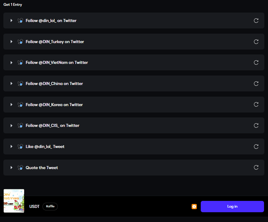 The DINDIN Christmas event is a week-long campaign filled with social activities designed to engage the Web3 community while spreading the holiday cheer. Hosted on Galxe, the event offers participants a chance to win rewards by completing simple social tasks. With 600 USDT allocated for those who join through Galxe and participate in tasks, this is your chance to enjoy the holiday spirit while earning exciting prizes.
