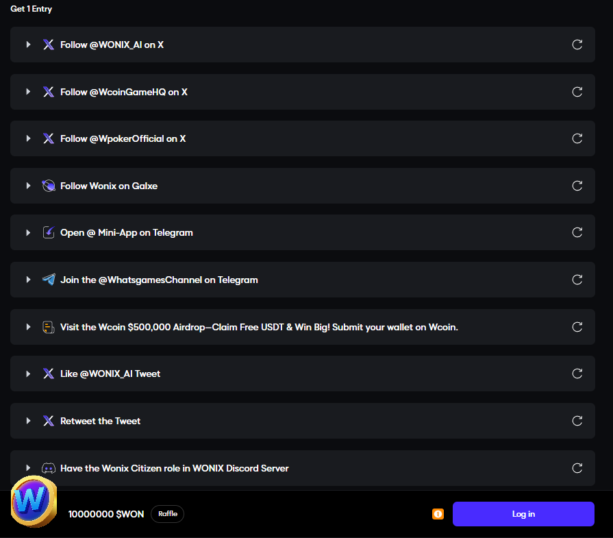 To qualify for this high-value airdrop and secure your place among the lucky winners, follow these essential steps on Galxe. Each task completed not only gets you closer to winning your share of 10,000,000 $WON tokens but also opens the door to exclusive Wcoin and Wpoker ecosystem rewards worth hundreds of thousands of dollars.