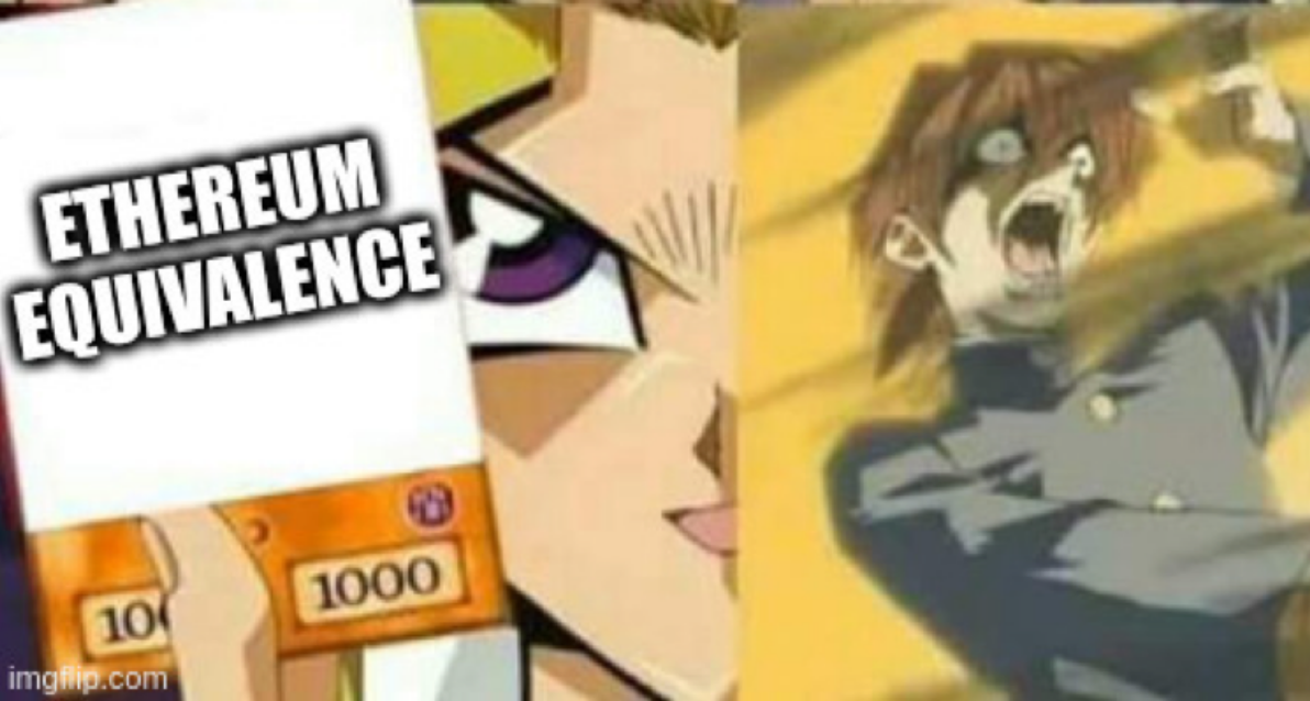 Después de Bedrock, la equivalencia de EVM ya no es suficiente. Al utilizar todo el código, la infraestructura y los patrones de diseño de Ethereum, Optimism apunta a algo aún más grande: la equivalencia de Ethereum (en inglés, Ethereum Equivalence).