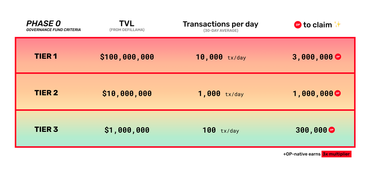 Los proyectos en la Fase 0 reciben un multiplicador de 3x si se consideran "nativos de OP", una determinación realizada utilizando un conjunto simple de criterios.