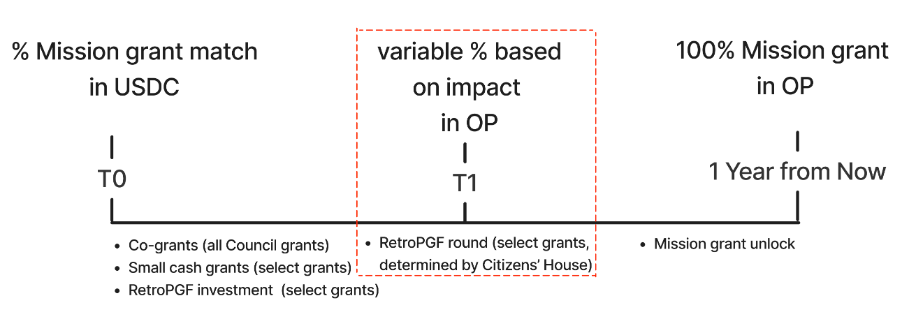 Las subvenciones de Misión se otorgan en forma de fichas de gobernanza OP. Estos tokens estarán bloqueados por un período de un año (similar a las subvenciones para constructores del Consejo de Subvenciones). ¡Entendemos que esto presenta algunas limitaciones y estamos entusiasmados de probar dos iniciativas para aumentar el acceso al capital inicial en la Temporada 4!