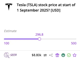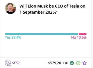 On Seer, users bet on whether Musk remains Tesla’s CEO by Sept 1, 2025.
