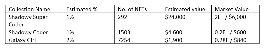 - Estimated % to NFT holders – 4%