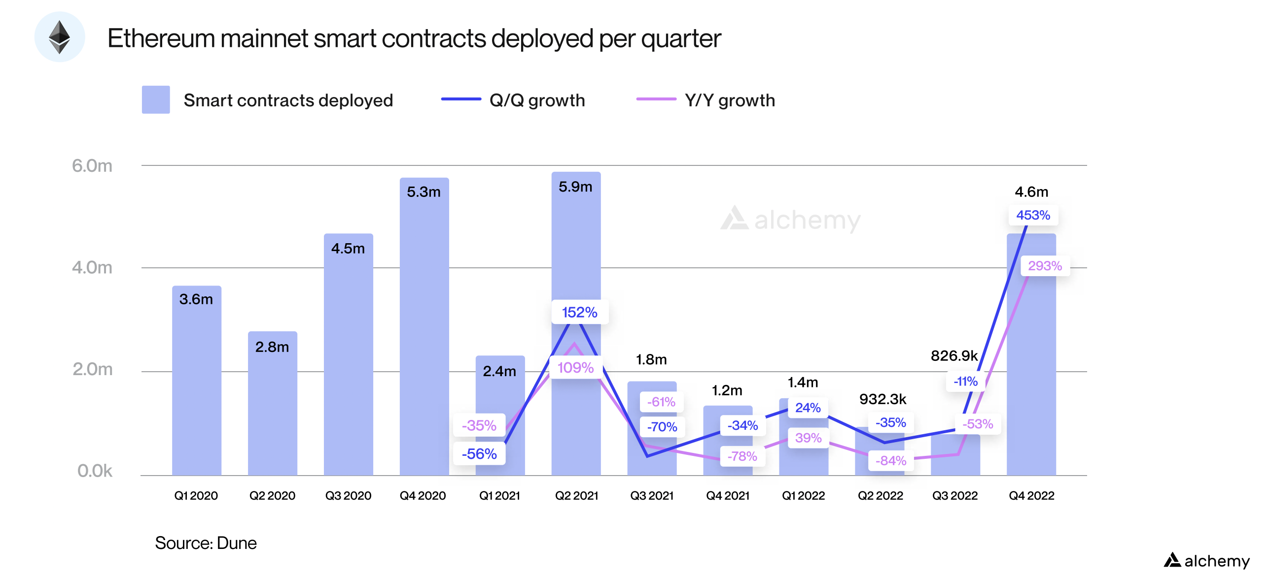 Builders got to know Goerli. In Q4 2022, goerlifaucet.com visits were up 154% as a result of increased developer interest post the Ethereum Merge