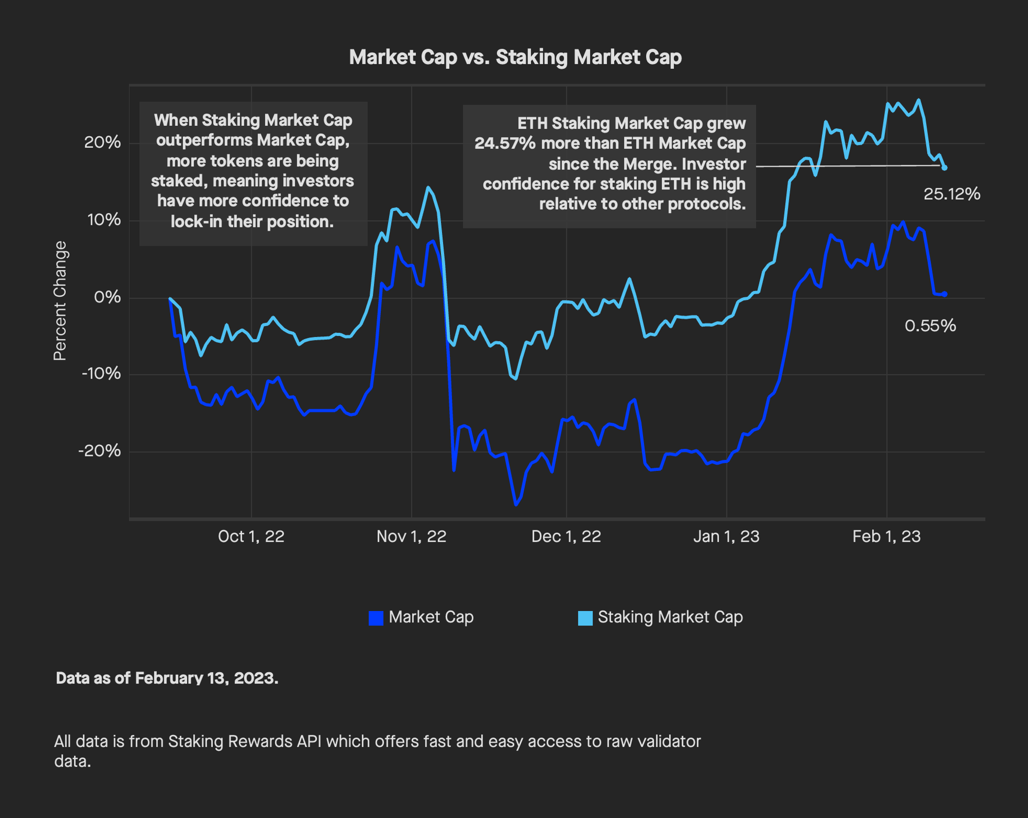 Investors remain optimistic as the Staking Market Cap has grown an impressive 24.57% more than ETH market cap since the Merge.