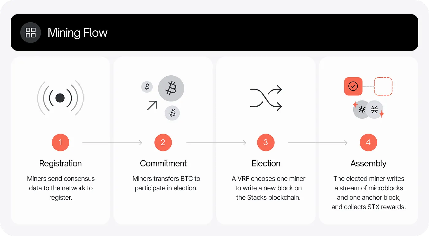 Assembly: The chosen miner writes the block and collects new STX tokens as rewards.