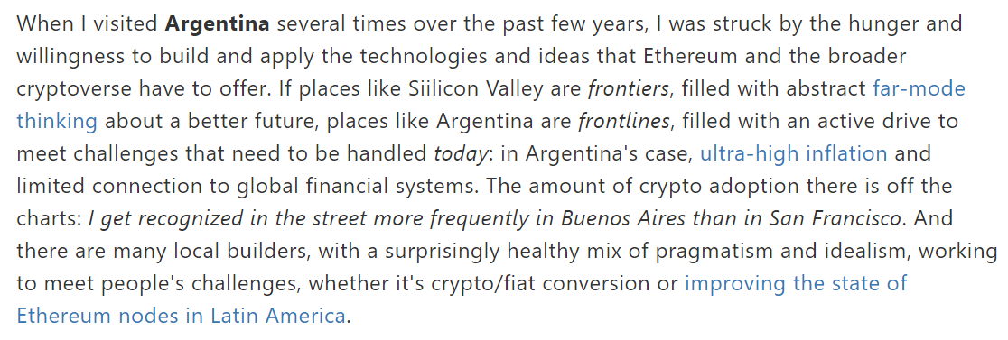 “Argentina es una mezcla de pragmatismo e idealismo, donde se trabaja para afrontar los retos de las personas, ya sea para convertir crypto/fiat o para mejorar el estado de Nodos de Ethereum en la región”