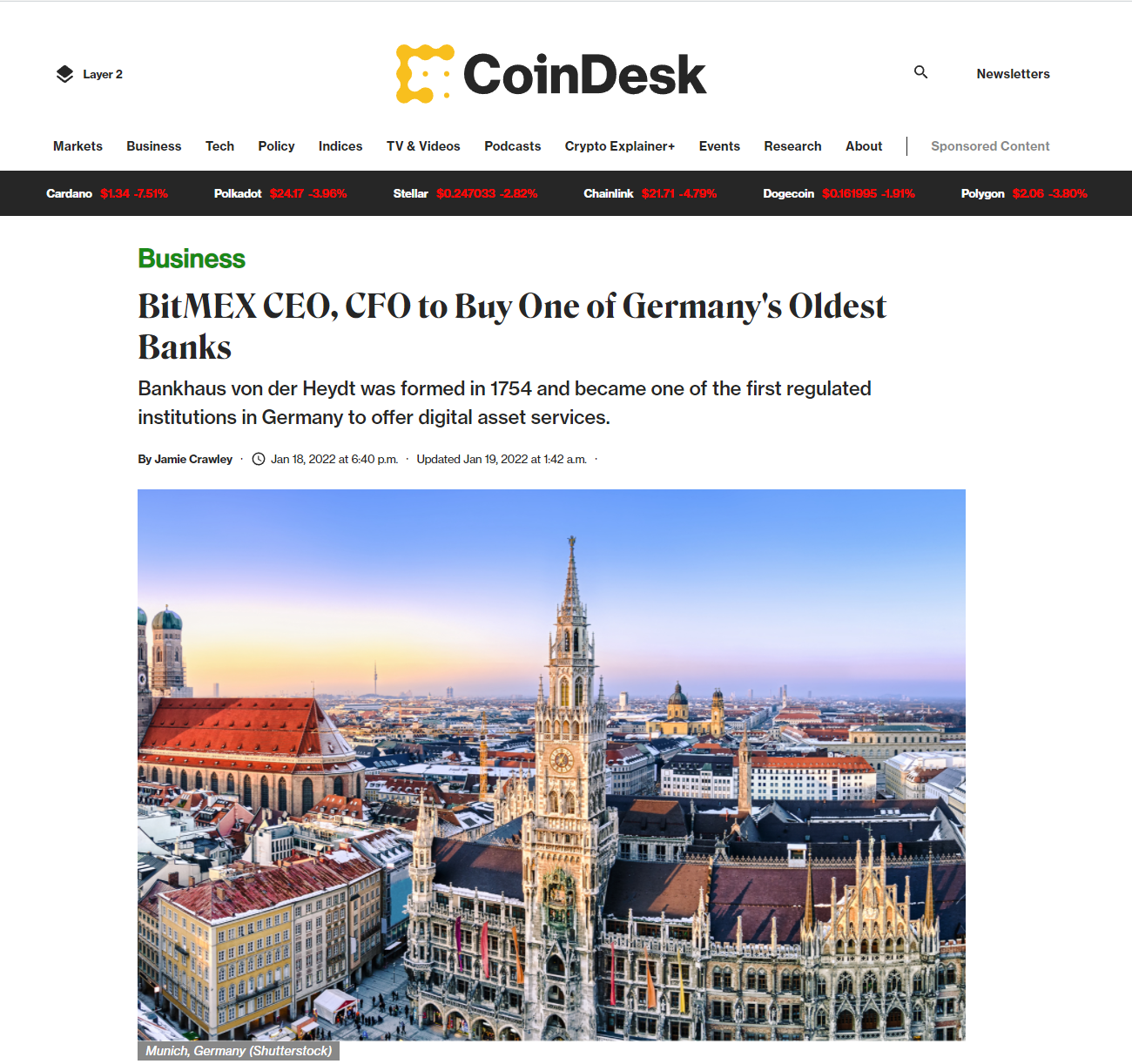 有一天,成立于 1754 年德国最老的银行Bankhaus von der Heydt 会被一家“ 成立于2014年的加密货币交易所BITMEX 收购。