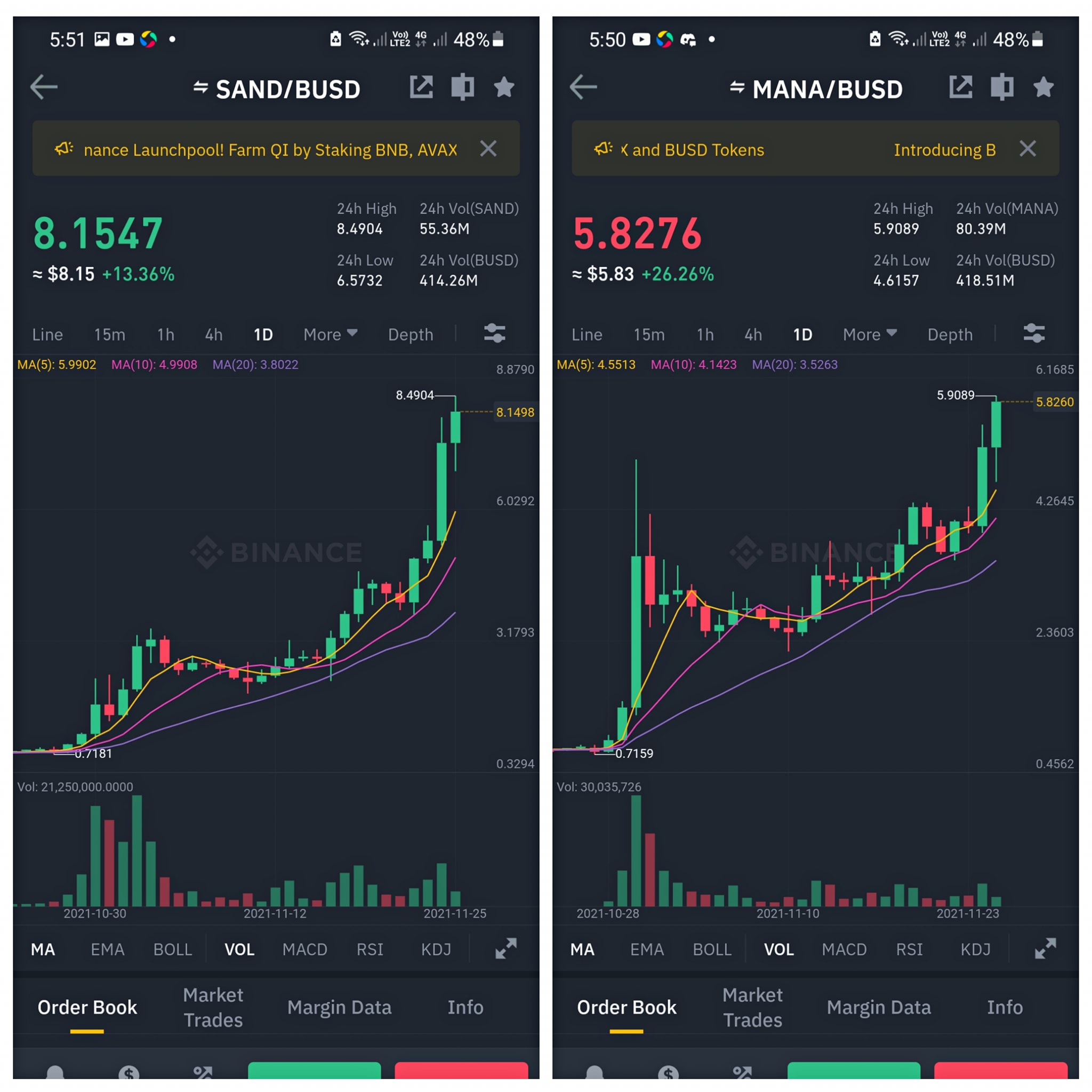$SAND ,$MANA 在一个月内涨了1000%上下。