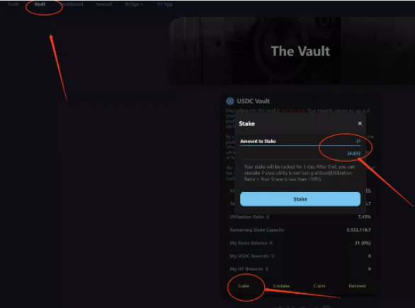 打开Granary(granary.finance/markets)切换OP链,找到存入USDC界面,存入51USDC