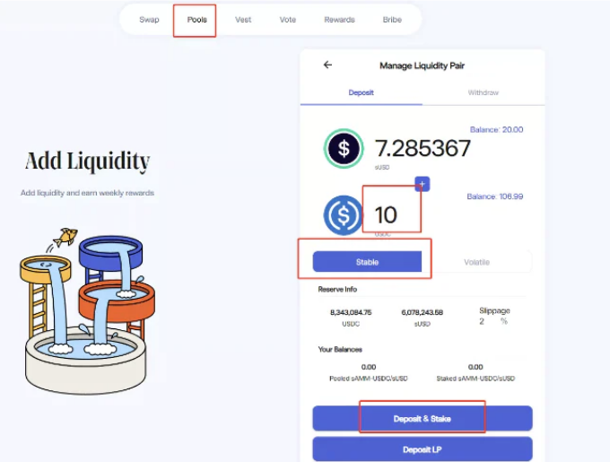 将10USDC和等值的sUSD存入稳定币池(BUG较多耐心测试)