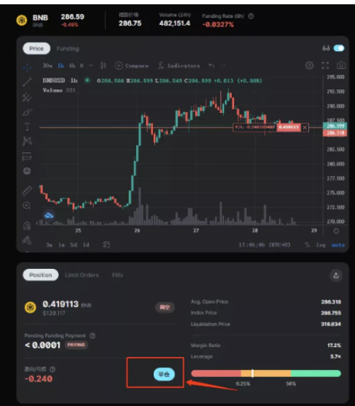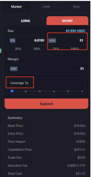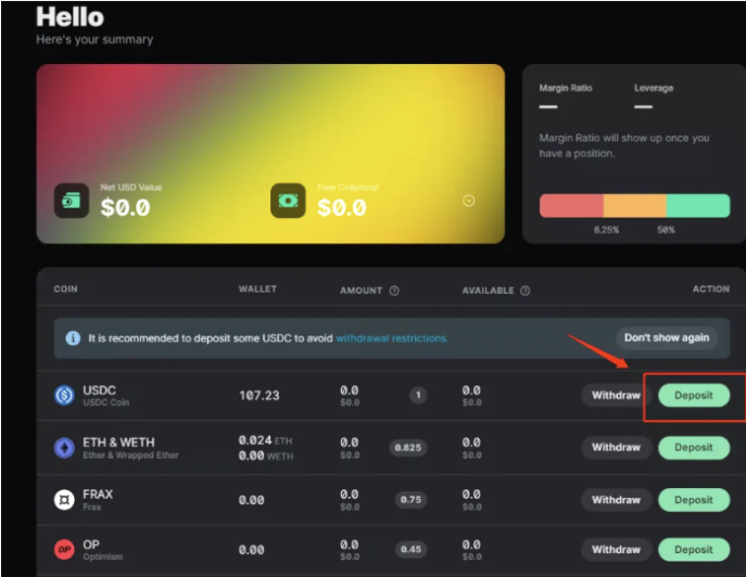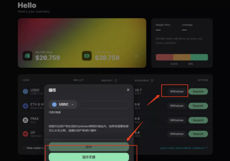 立即平仓(正常损失0.2u左右)提出剩下的USDC