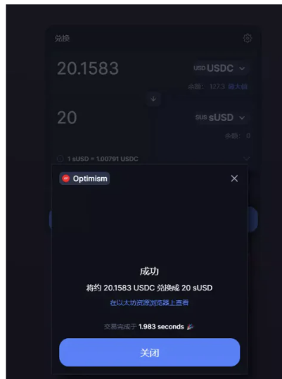 将21USDC通过Uniswap(app.uniswap.org/#/swap)兑换为等值的sUSD(等会任务要用)
