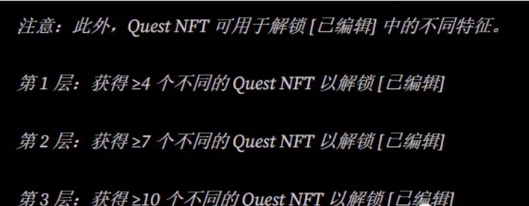 在官方公告中,我们可以得知获得10个Quest NFT 即可解锁第三等级,