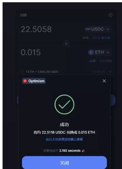 成本主要以GAS为主,而由于optimism作为L2的特性,链上数据需要上传L1 (ETH)网络,所以GAS成本主要以ETH的gwei为主,本文测试都是ETH GAS在10-15左右完成,耗费成本大概在