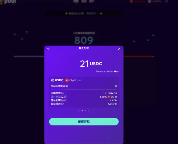 打开 pooltogether.com 存入21U,三天后快照领取NFT后提现