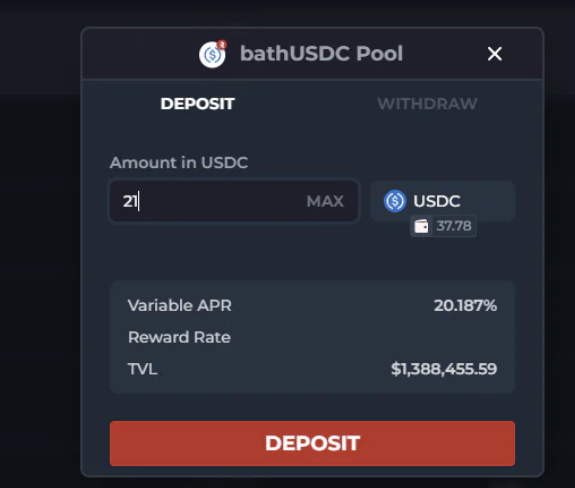 在synapse(synapseprotocol.com/pools/optimismnusd)存入 21 USDC