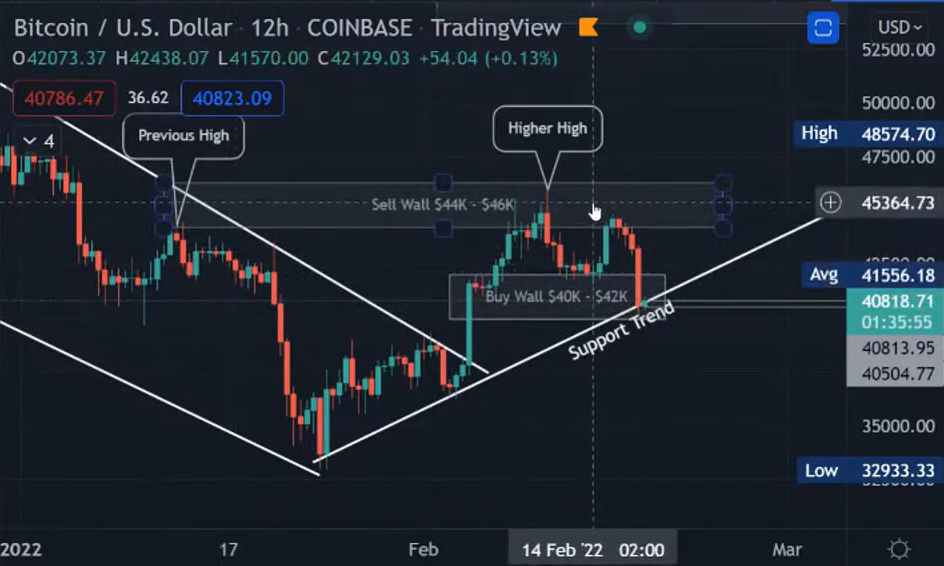 比特币这段时间在40000-46000之间徘徊,预计到达39700反弹向上