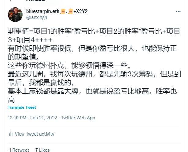 此处也可以参考我这篇推特,树立自己期望值的概念,如下: