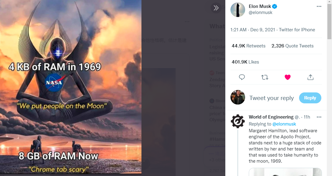 另外特斯拉老板马斯克,今天发布的一则推特,we put people on the moon,这则推特是马斯克第三次发推,隐晦提到people了。