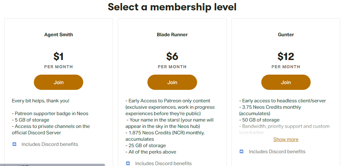 通过赞助铸造的NCR,获得的NCR数量为当时NCR价格等值数量的50%到70%。赞助的金额分为3个级别,1美金,6美金,以及12美金一个月,可以获得不同的存储空间,以及进入不同内容频道的特权。