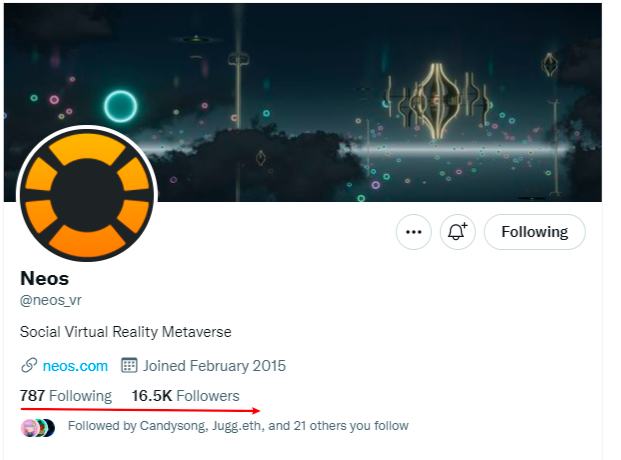 根据其关注人数可以得出,团队不擅长于营销。官方推特关注人数1.6万人,稍微好一些。官方推特和创始人推特都是转发用户在Neos创作的内容为主,官方推特点赞数,引用数在100到400.