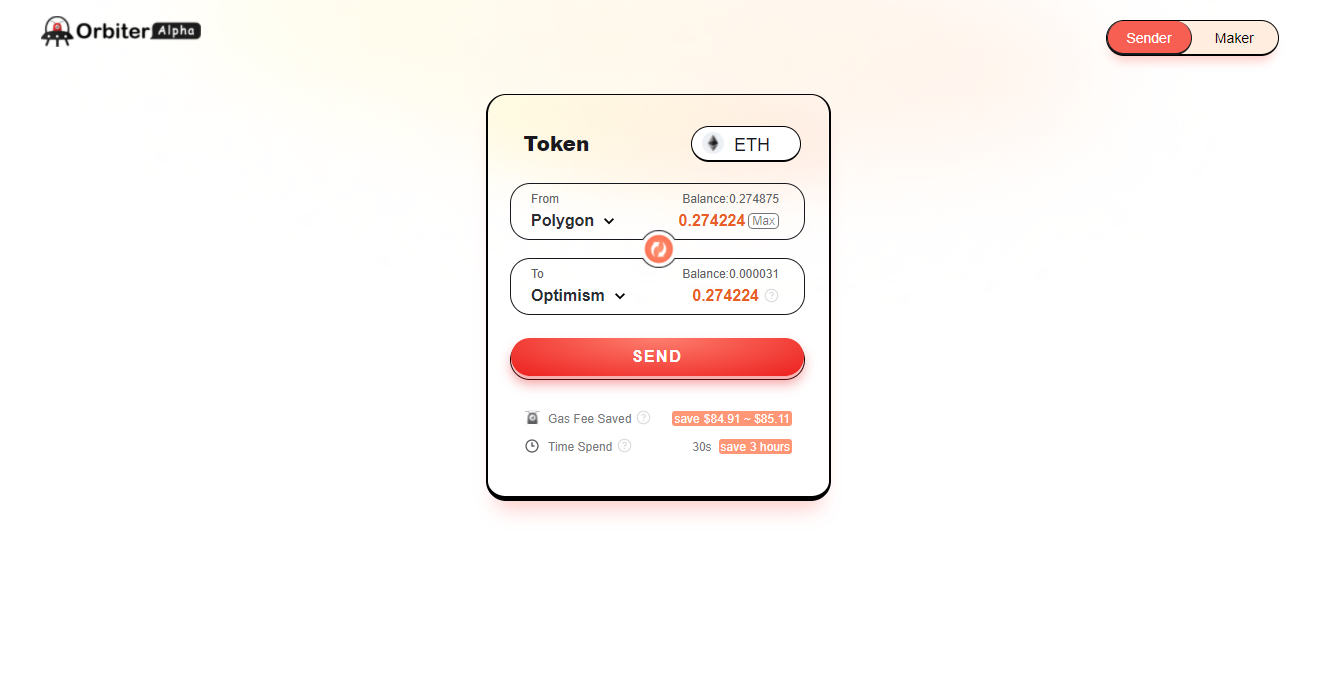 Orbiter 支持高频交叉汇总事务,因此它可以足够便宜且足够快,以长期适应更多交叉汇总用户案例。如果你已经测试过Orbiter App并在区块浏览器上查看了交易日志,你会发现你已经将它发送到了 Maker 的 EOA 地址,而不是合约的地址。这是 Orbiter 和其他桥接协议之间的显着区别。