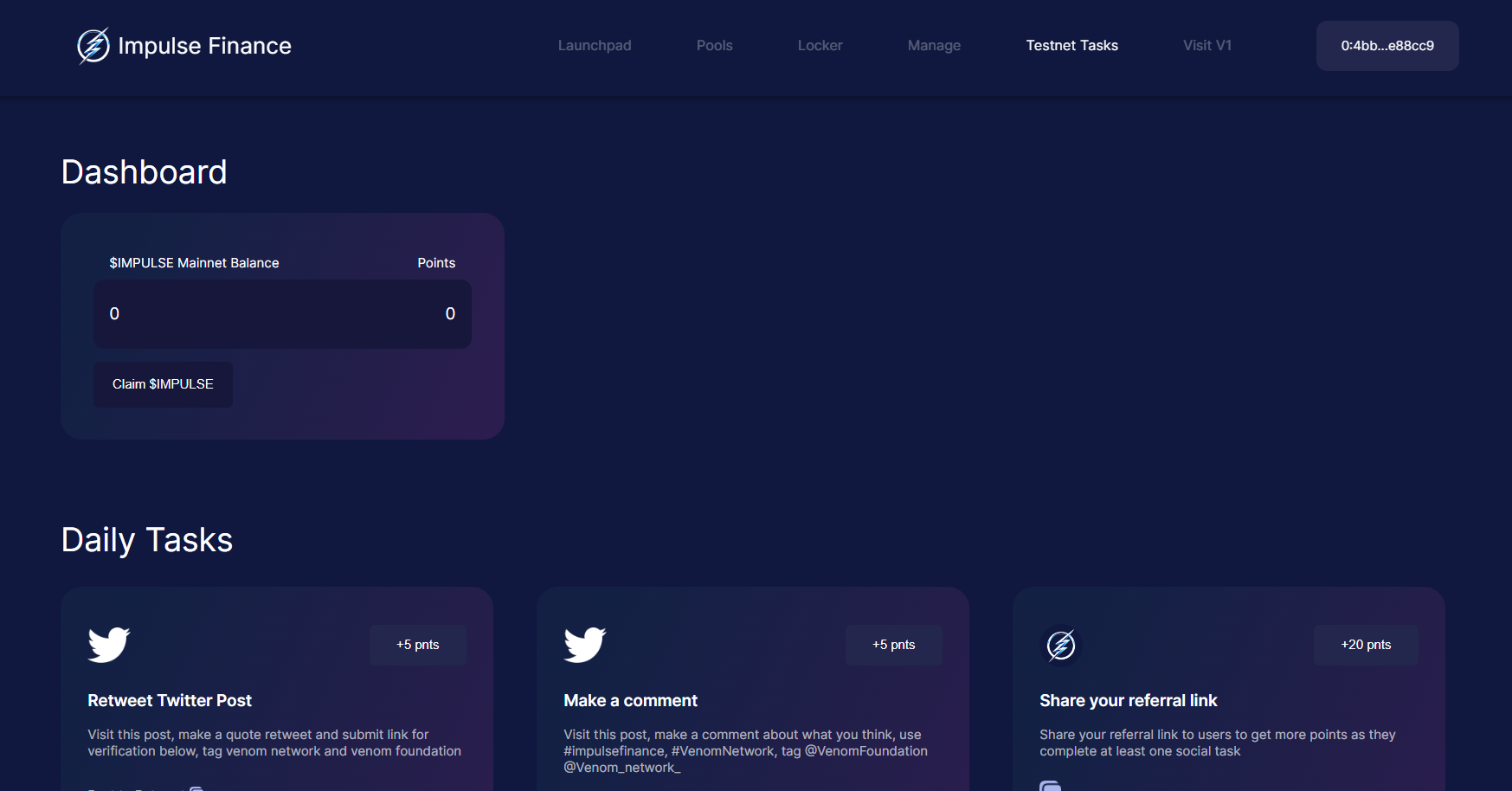 Join their tasks daily to claim $IMPULSE tokens