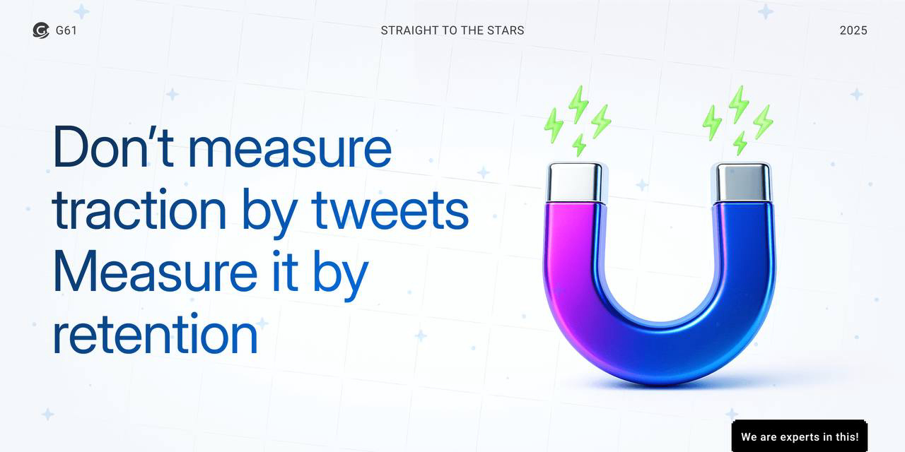 If your “traction” lives only on social media…it’s not a traction. Real one lives inside your retention curve: DAU/MAU ratio, cohort stickiness, recurring activity, referral loops