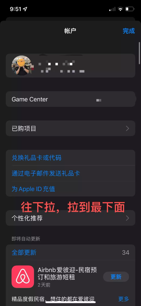 进入AppStore,点击右上角头像个人信息,拉到最下面,退出登录,之后登录境外苹果id