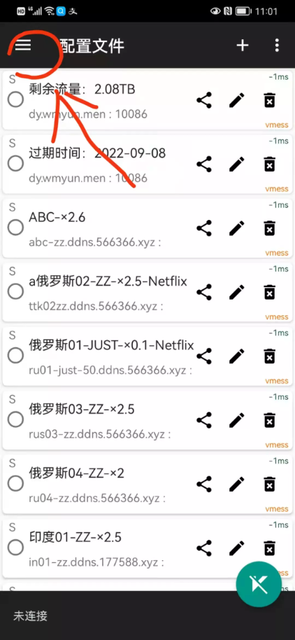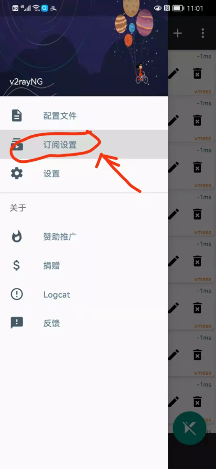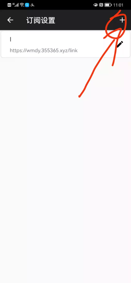 之后打开app,先点击左上角的三个横杠,之后点击订阅设置,点击右上角的+,备注随便输入(如01),在地址栏填写在vpn网站上复制的节点地址。