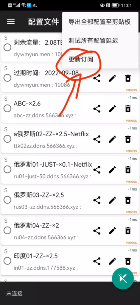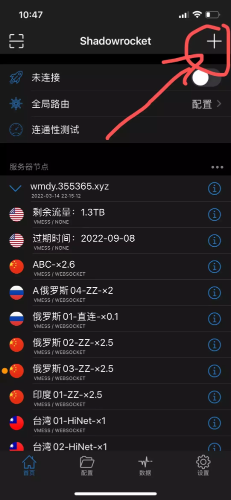 操作完毕后回到配置文件,点击右上角+后,点击更新订阅