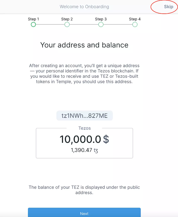 7、这步教你如何使用钱包,可以直接点击右上角的Skip跳过。
