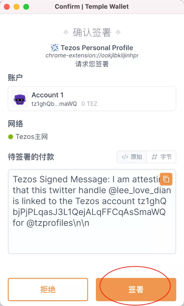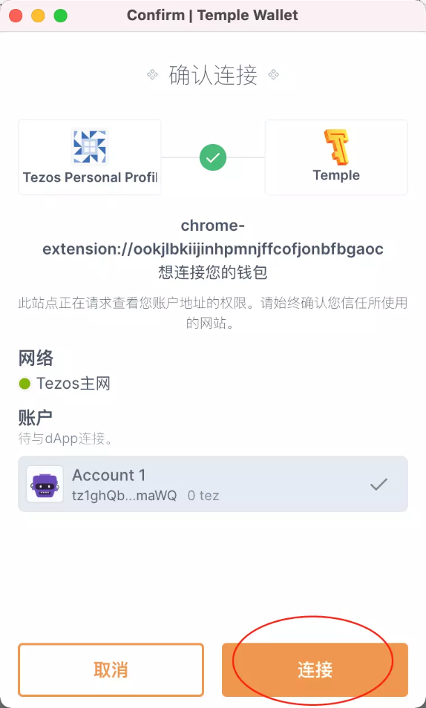 2、选择主网,链接钱包(注意要保证你的网页没有自动翻译,不然无法连接),选择Temple钱包,进行签名链接。
