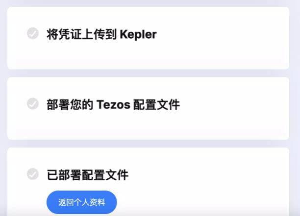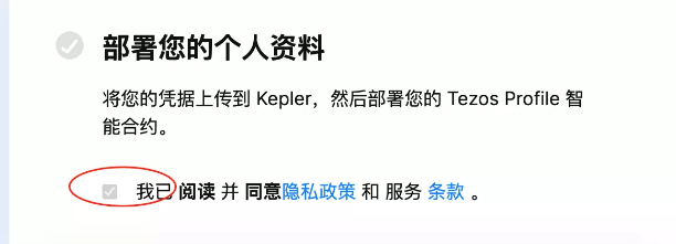 3、点击第二步将您的凭证上传到Kelper,在钱包中燃烧大概2刀左右的矿费,然后便部署完成,您的凭证已经成功上传到Kelper。