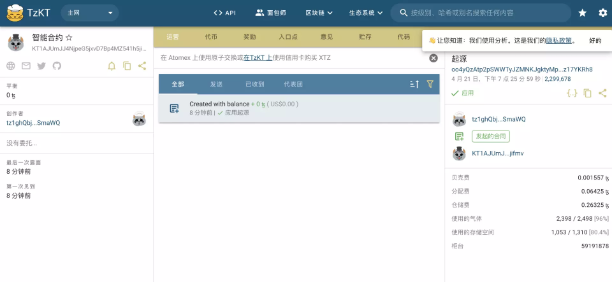 4、在个人资料点击查看TzKT,便可以在TzKT上看到你的合约部署情况,到这里便完成了。