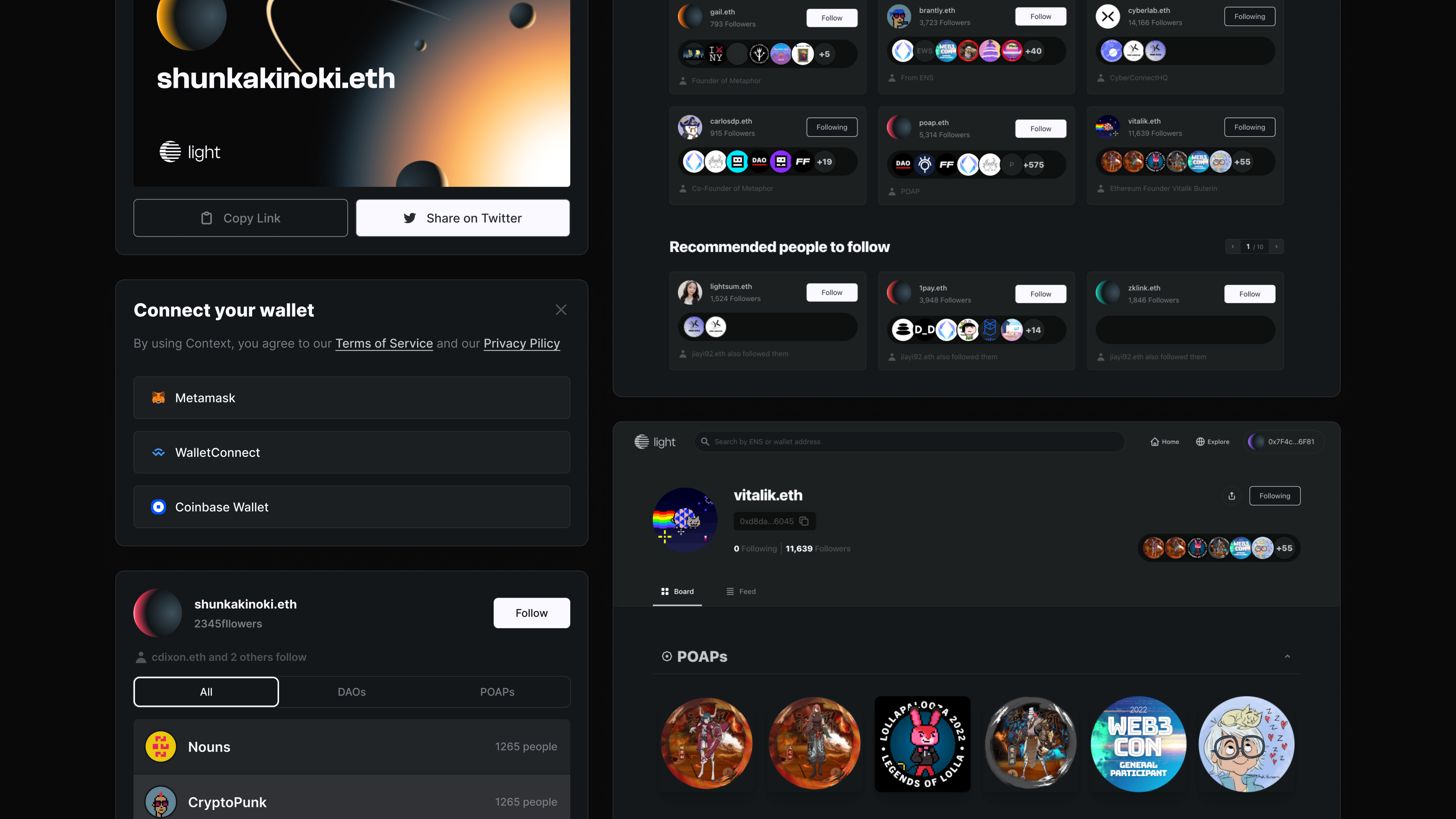 Light helps you discover new connections on the blockchain through an aggregated web3 feed.